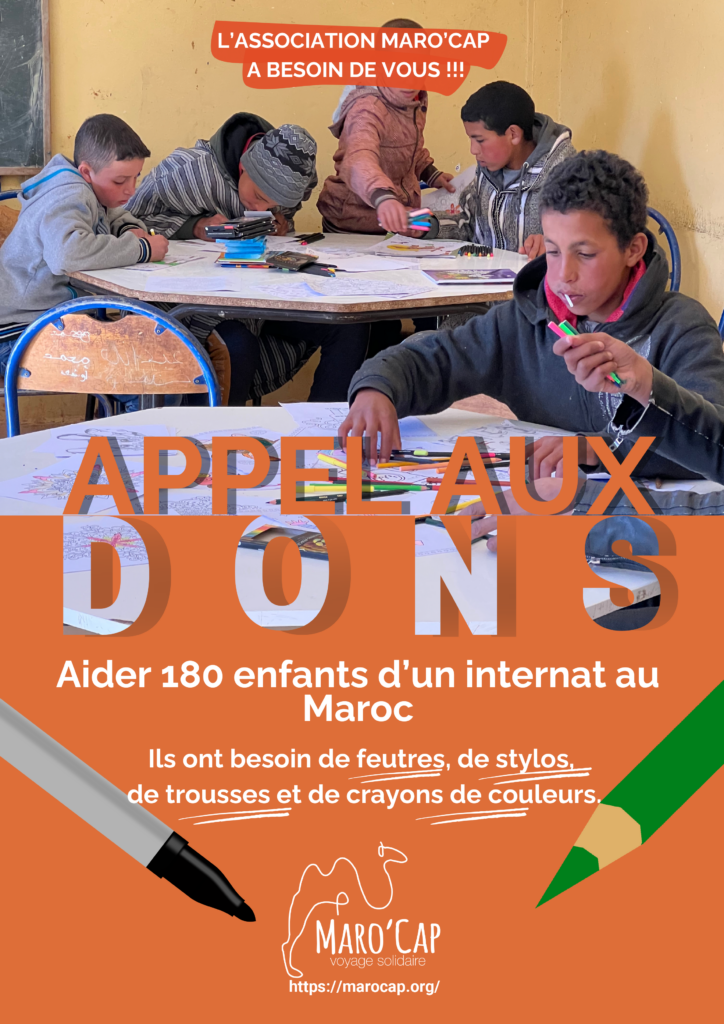 L’an dernier, j’ai intégré le projet tutoré Maro’cap. Notre mission était d’améliorer le quotidien d’enfants dans deux internats au Maroc. Grâce à une récolte de fonds et de fournitures, nous avons pu financer un chauffe-eau solaire et fournir des protections hygiéniques (culottes menstruelles) et du matériel scolaire.